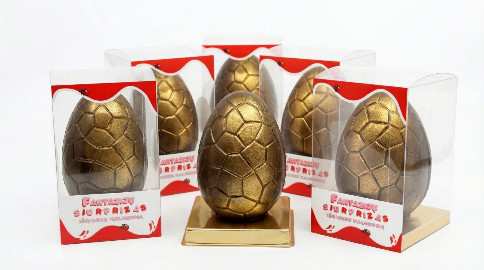 „Fantazijų siurprizas“ – tai riboto leidimo, 160 g aukštos kokybės juodojo šokolado kiaušinis, padengtas prabangia aukso spalva. Viduje slypi vertinga dovana, kviečianti pasinerti į malonius atradimus.